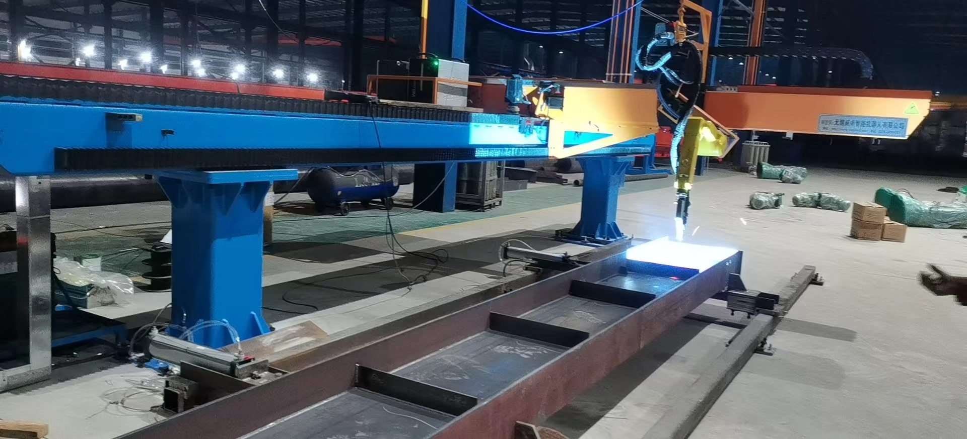智能焊接在鋼構(gòu)行業(yè)的成功應(yīng)用針對鋼結(jié)構(gòu)中常見的H型鋼等鋼梁工件,威卓設(shè)計(jì)研發(fā)了小龍門智能焊接工作站,焊槍部分使用鋼梁專用焊槍,更適用于鋼梁焊接;搭配傳感器使用,自動(dòng)尋位識(shí)別焊縫,無